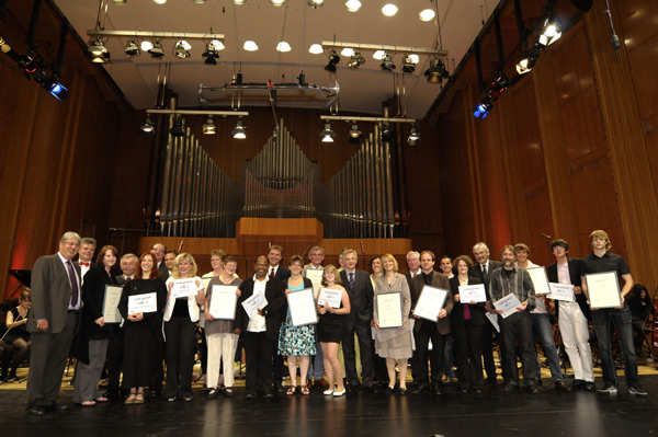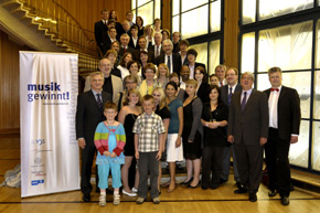umrahmt von den Jurymitgliedern Prof. Karl Karst, Christian